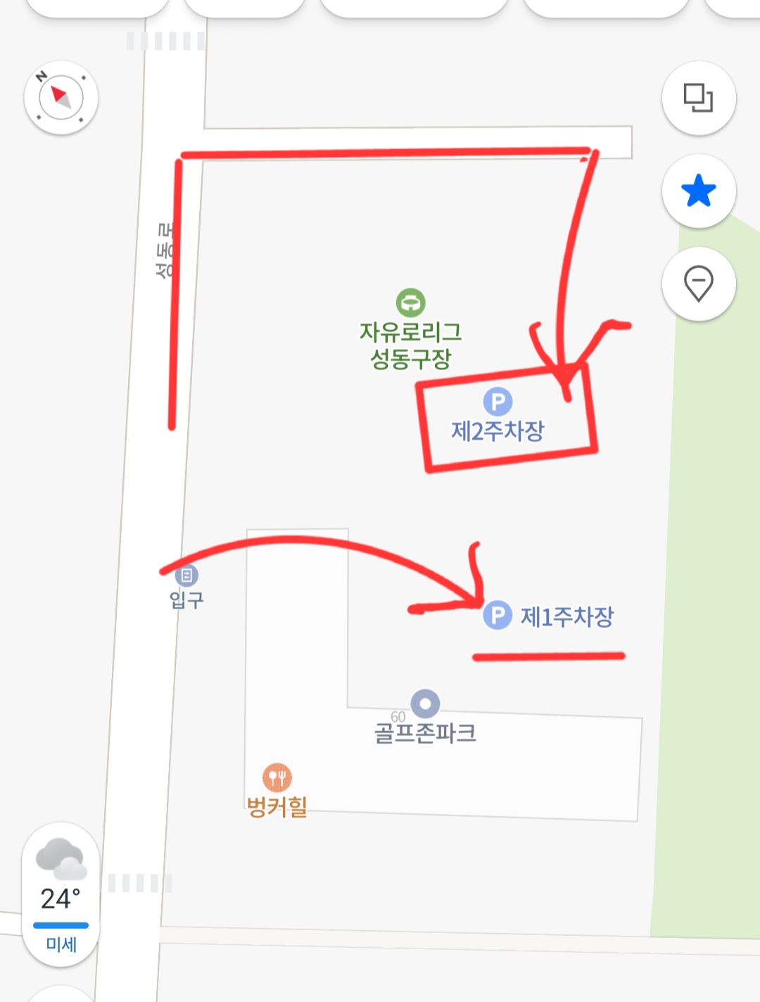주차장은 카페로 바로 들어올 수 있는 제1주차장과 요기에 자리가 없을때는 옆쪽 제2주차장까지 있어서 주차장소는 여유로워요.
