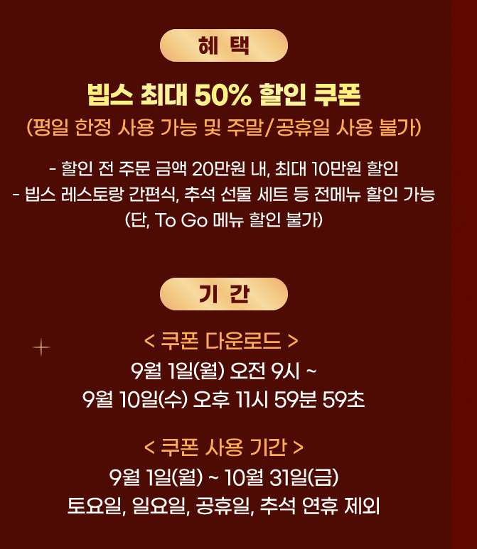 빕스 평일 50% 할인쿠폰