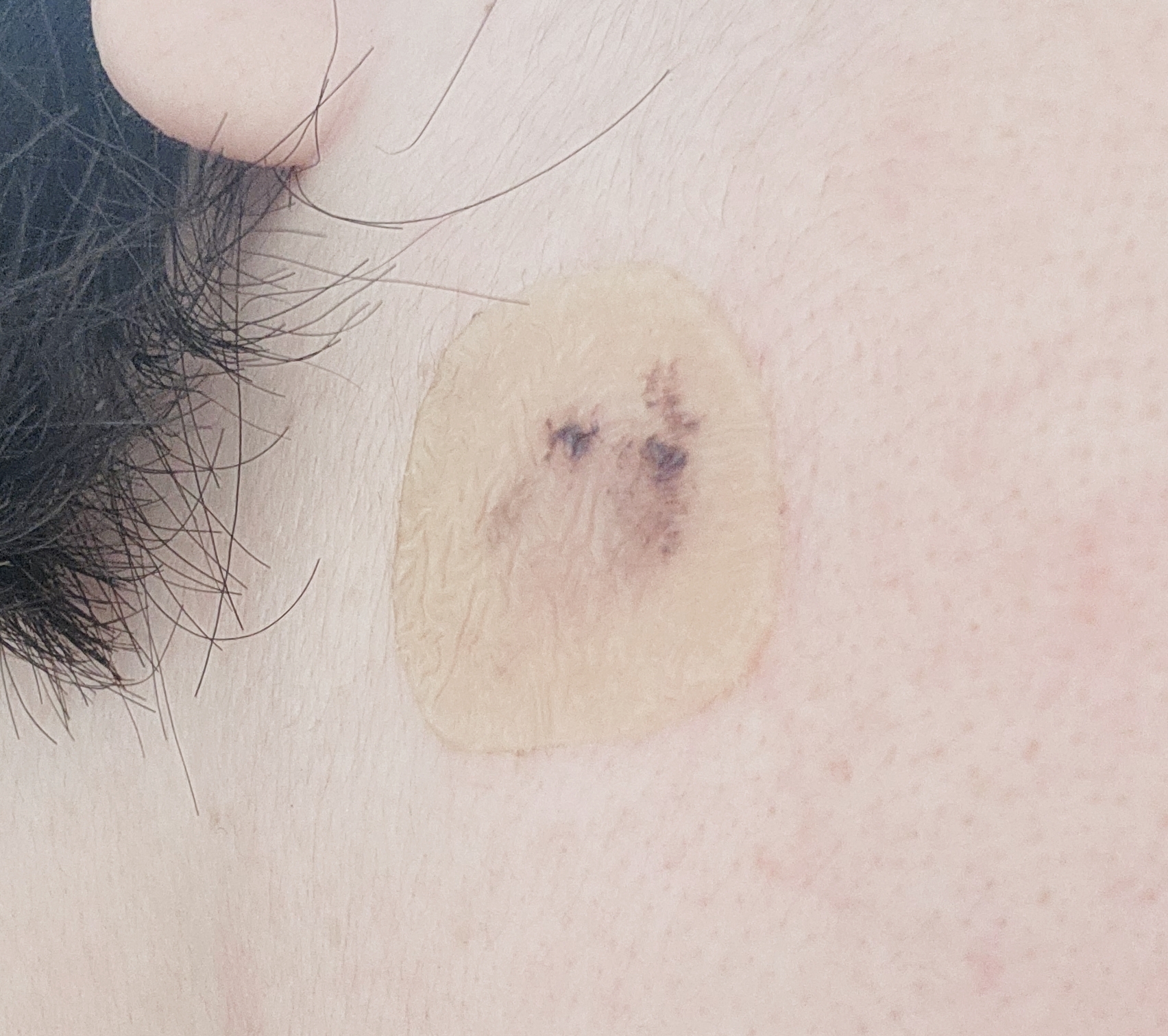 시술직전 사진과 비교하면 확실히 듀오덤 주변이 부풀어있죠?
