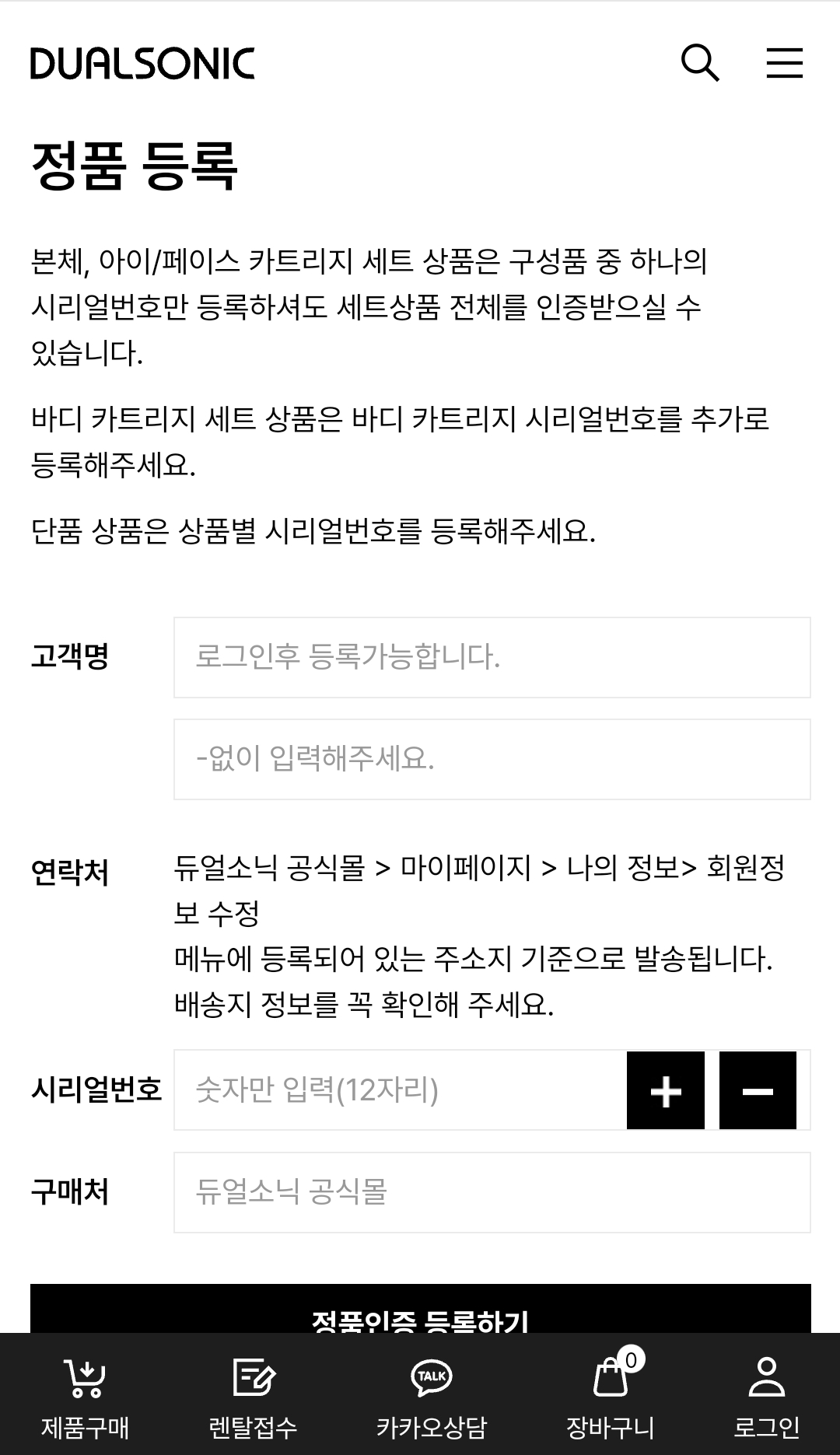 본품에 있는 요 검정 보증서의 뒷면의 시리얼번호를 넣어주면 정품인증은 금방끝나는데요